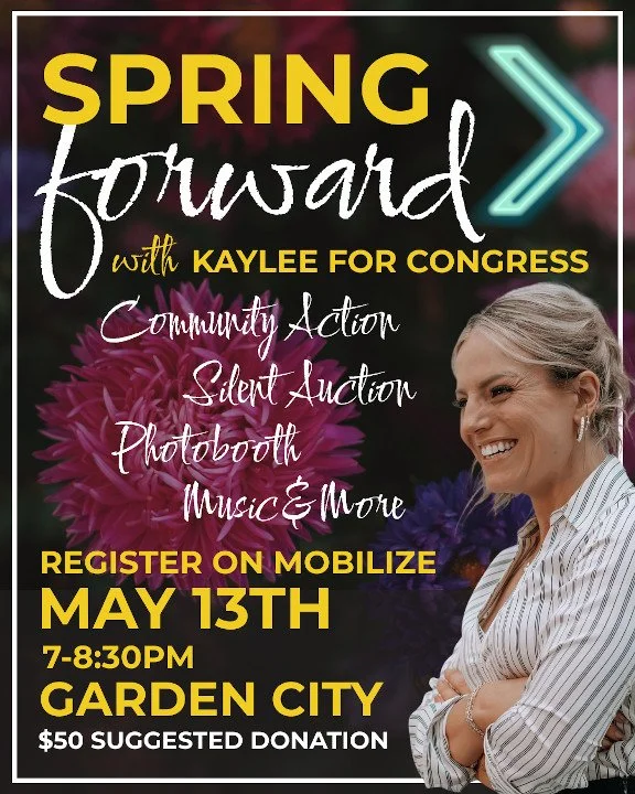 Join Kaylee for Congress in Boise as we get ready for the primary elections. With a silent auction, music, and more... hear from Kaylee how we move Idaho forward in 2026 and raise enough money to flip Idaho's First Congressional District in the midterm elections!